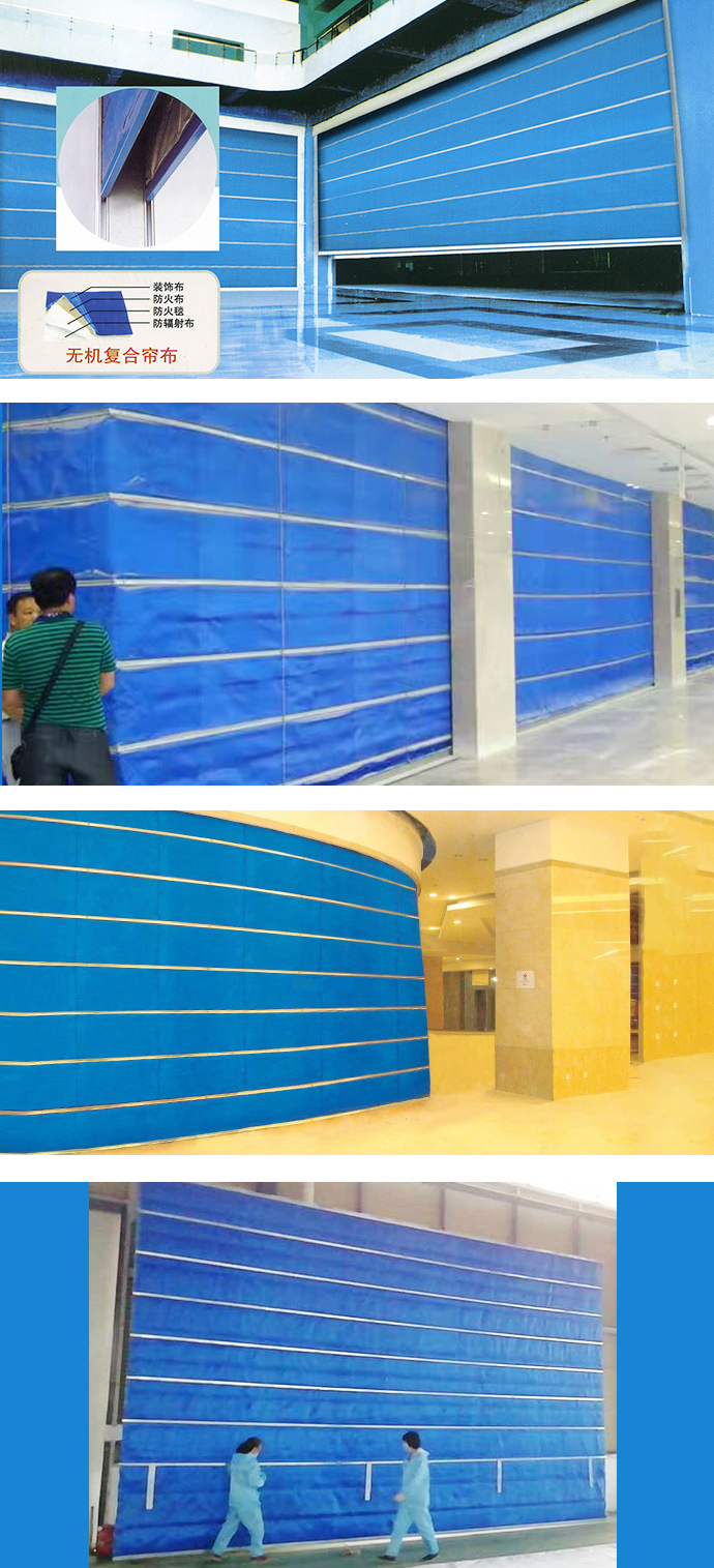 窗簾由四層防火材料制成,分別有玻璃纖維布、硅酸鋁棉、陶瓷纖維布和輻射防護布。