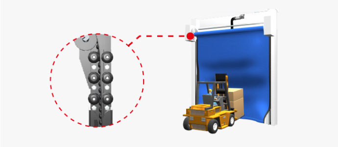 2.采用拉鏈將織物與側(cè)框?qū)к壵w連接起來,實現(xiàn)更好的密封性能和氣密性。當(dāng)發(fā)生事故碰撞時,織物可以從導(dǎo)軌上走出來,然后自動返回。這減少了日常維護。